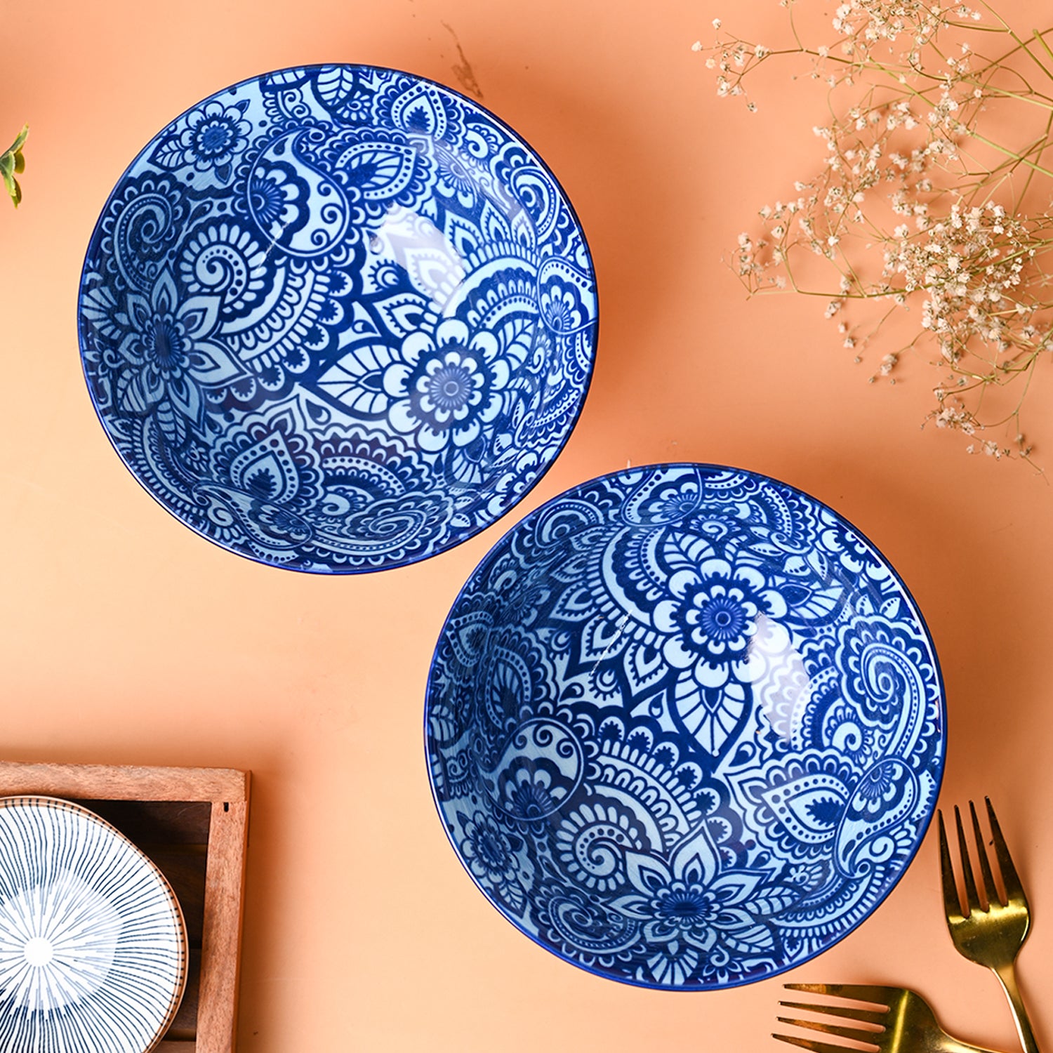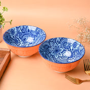 Enhance your eating experience with this ceramic bowl set. These stunning blue and orange spherical bowls have a beautiful flower design. Made of high-quality ceramic, they make every meal a piece of beauty by serving and beautifying your food.
