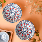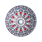 Style and function combine in our ceramic bowl set. This set features two charming circular bowls with a modern geometric motif in white and blue to elevate your dining table. High-quality ceramic bowls are beautiful and functional. This excellent accent elevates your culinary presentation.