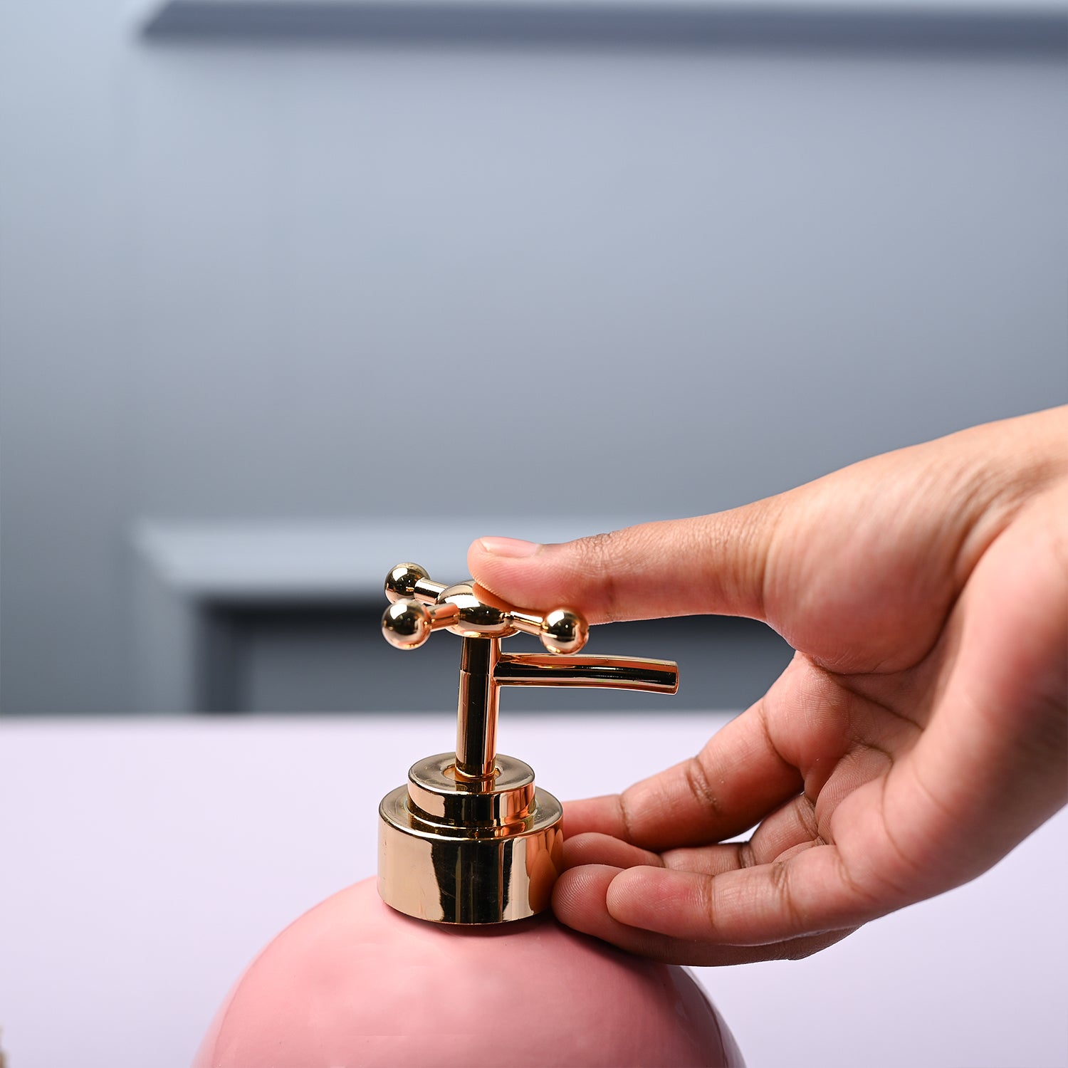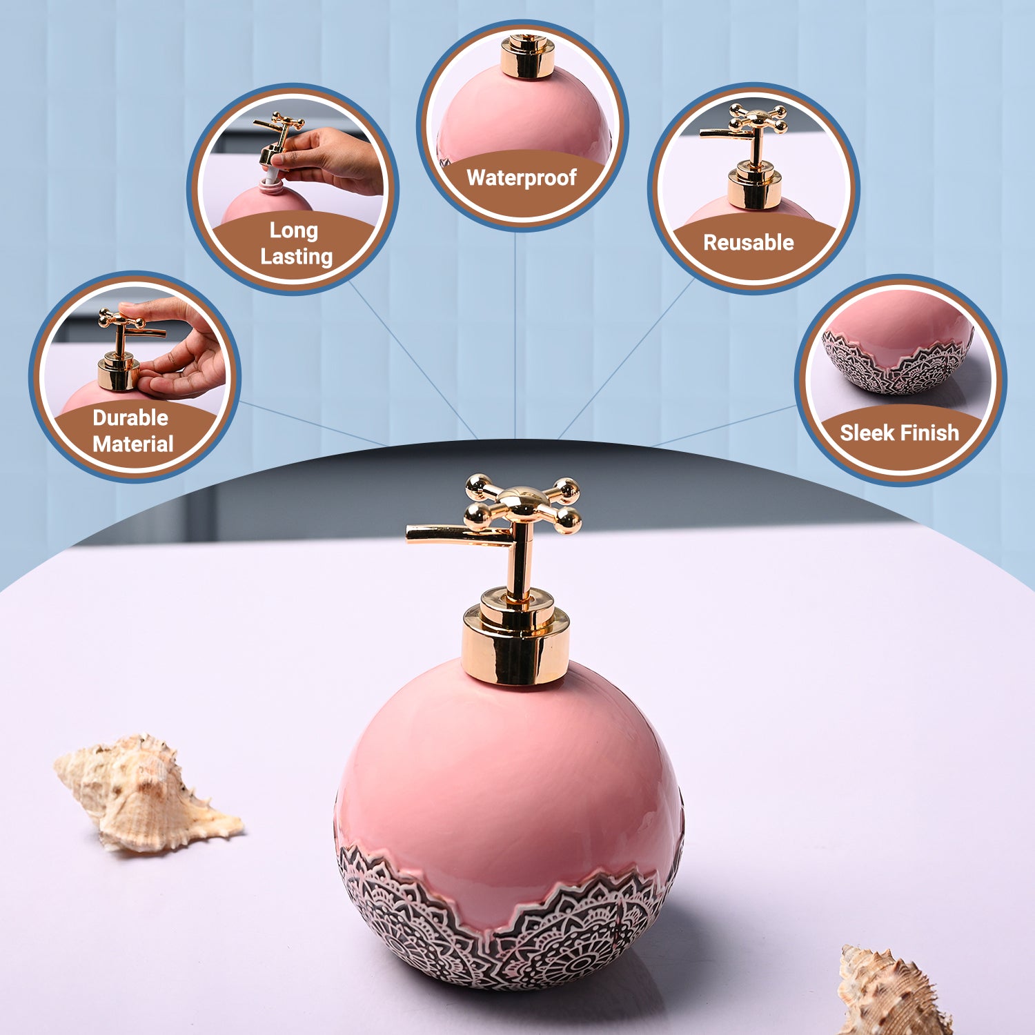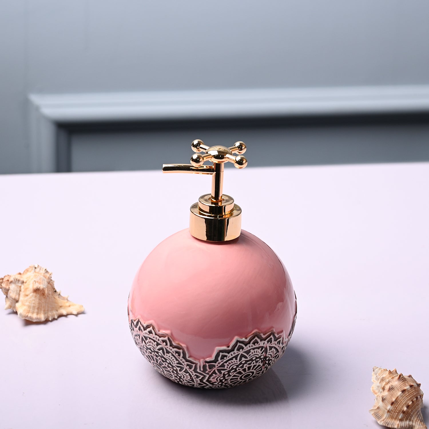 Ceramic Pink Round Soap Dispenser - Embossed Glossy Finish