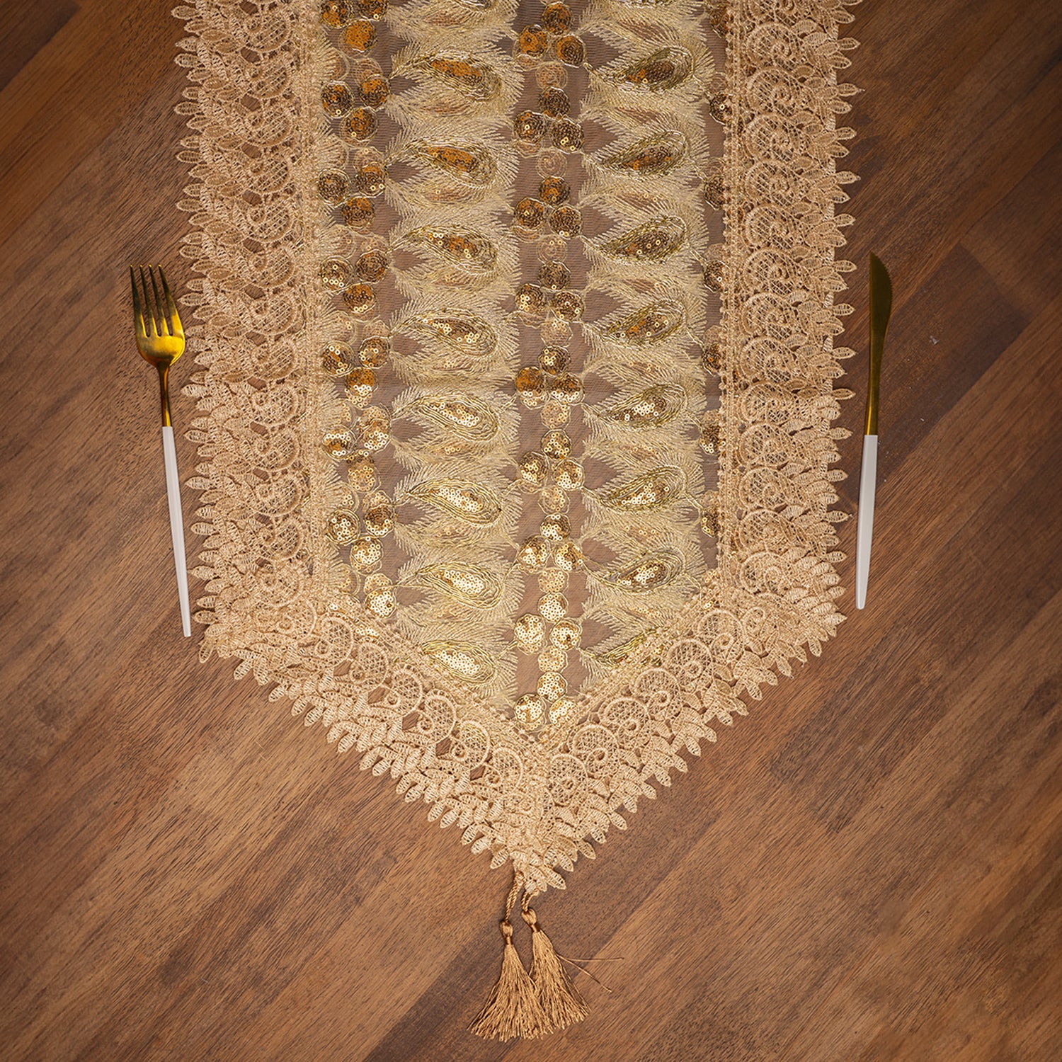 - Golden Elegance: Add a touch of opulence to your table with this stunning golden polyester table runner.