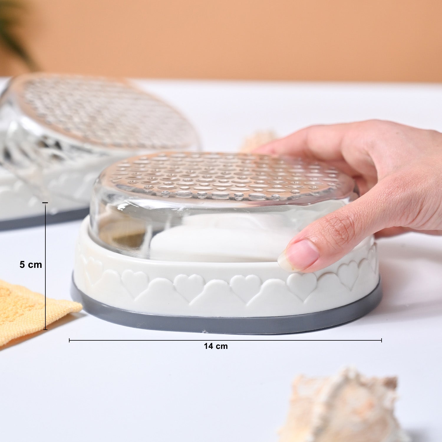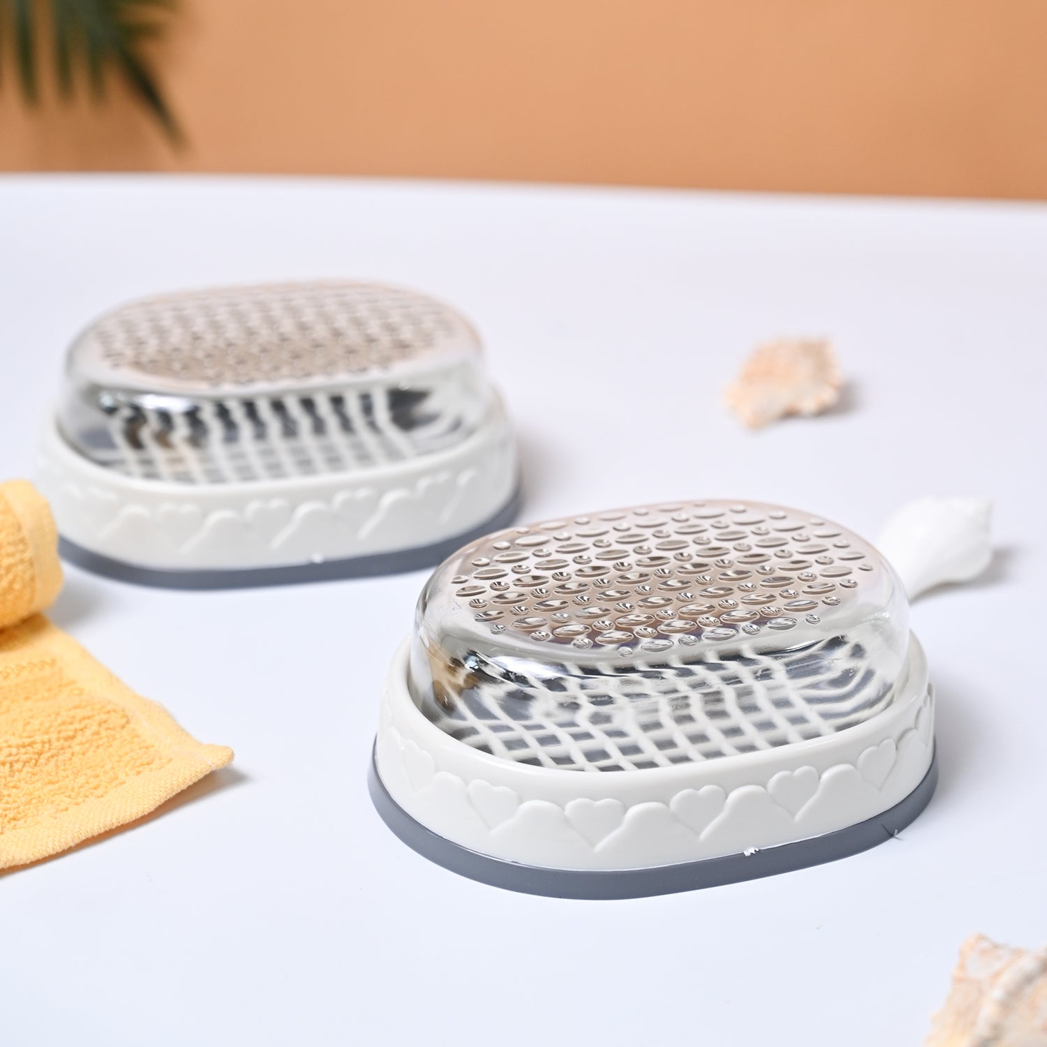 Market99 Plastic Off White & Grey Soap Dish - Set Of 2