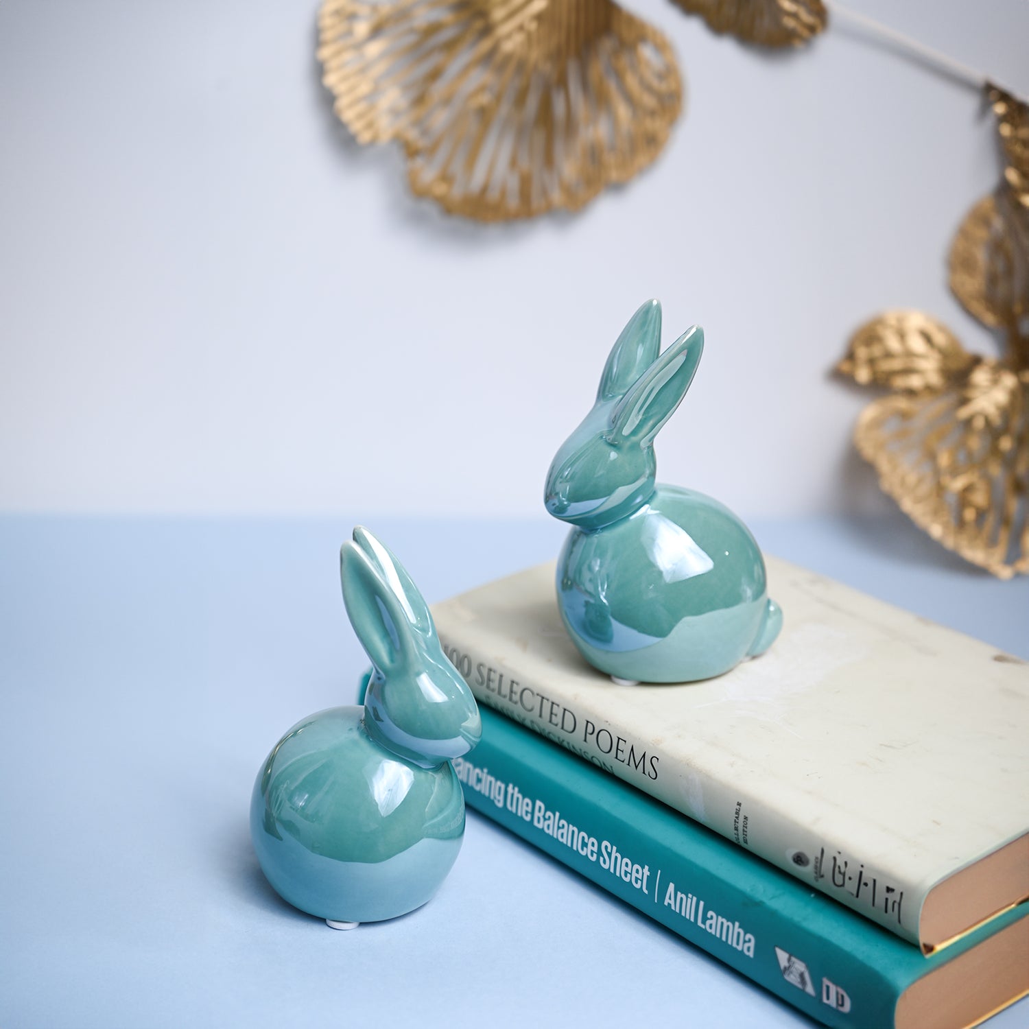VON CASA Ceramic Decorative Rabbit - Skyblue, Set Of 2