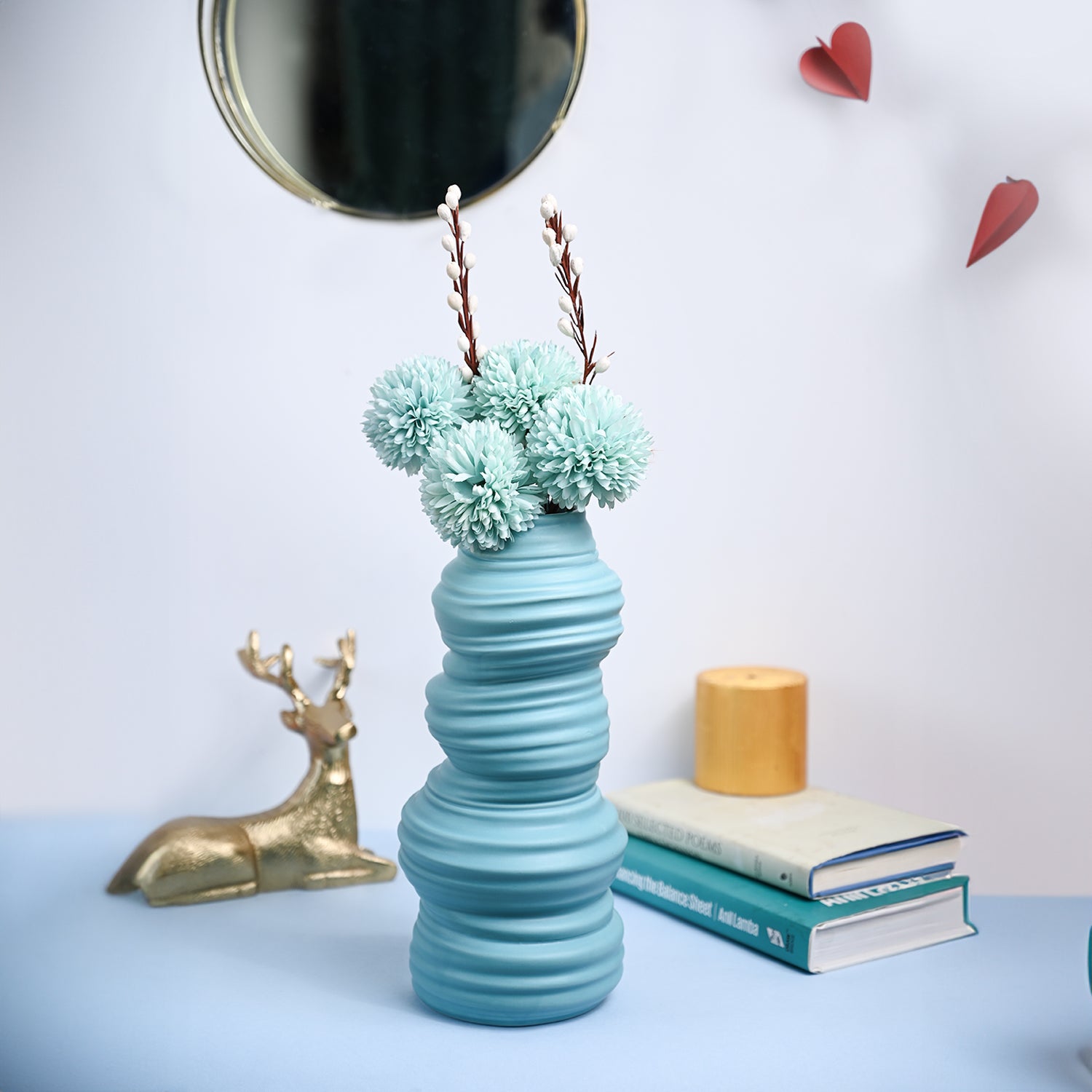 Introducing our Sky Blue Asymmetric Vase, a charming addition to your home decor. This Flower Holder, made from high-quality ceramic material, features a unique asymmetrical shape that adds an artistic flair. The serene sky blue color brings a sense of calm and elegance to any space.