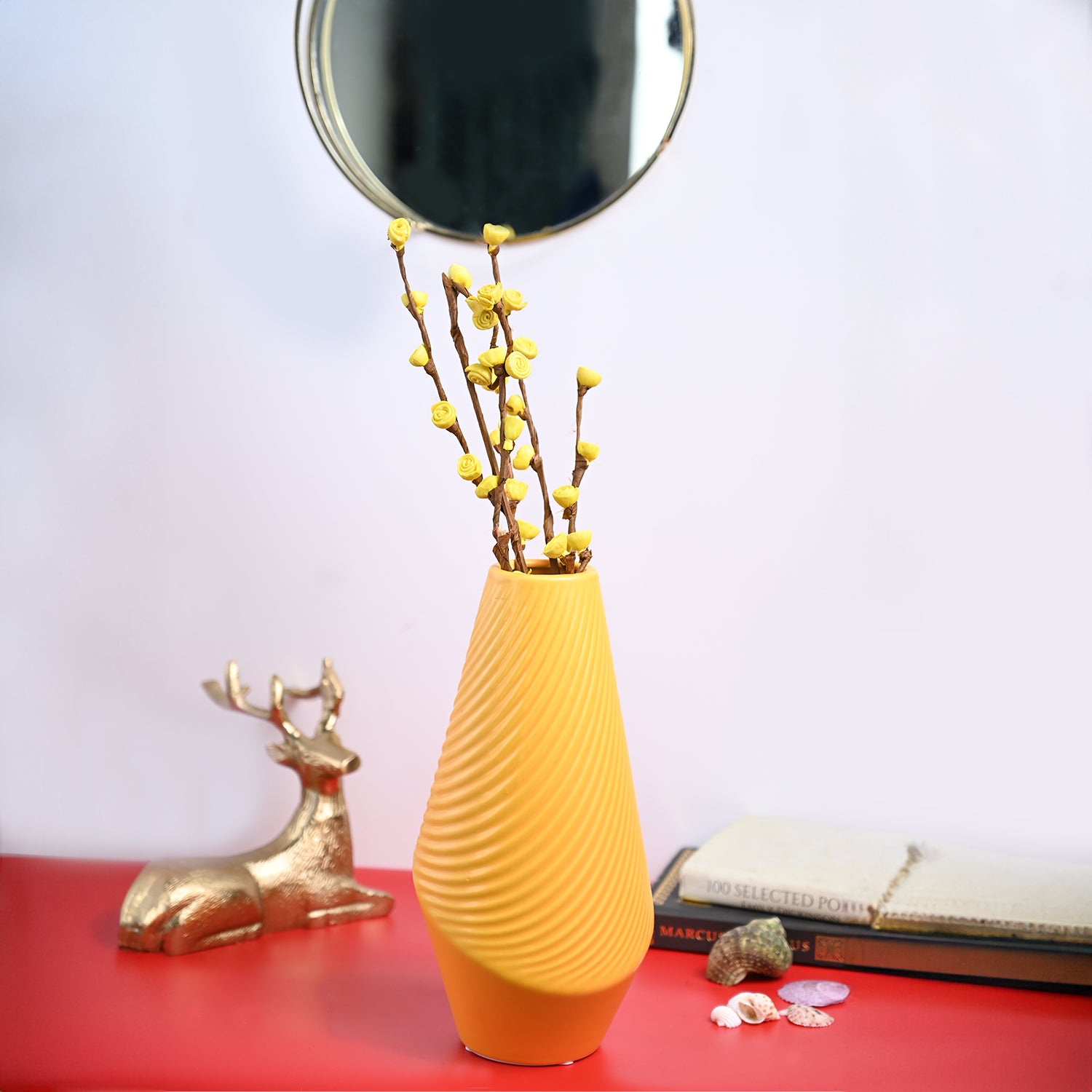 - Radiate positivity with our Yellow ceramic vase, designed to bring a touch of sunshine.