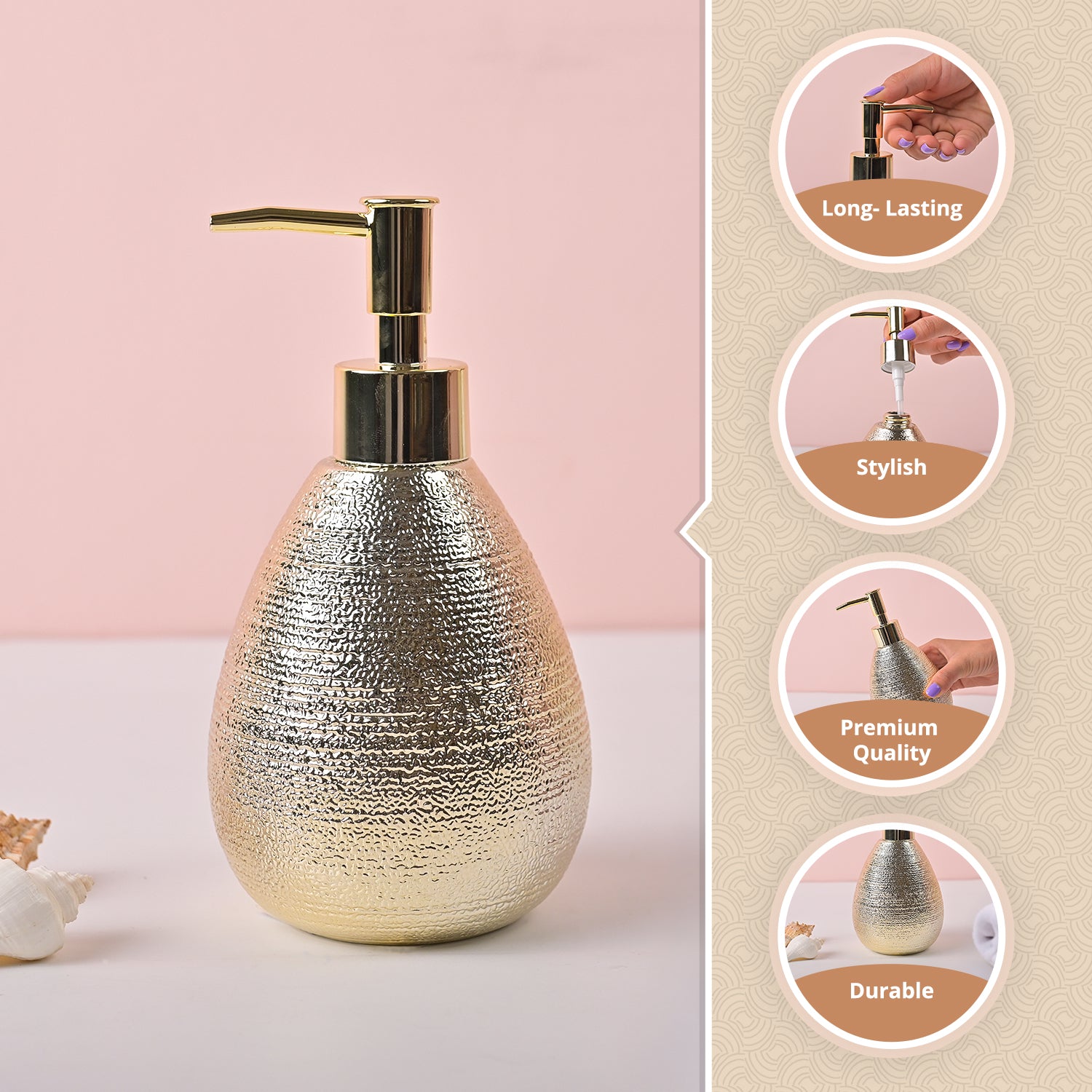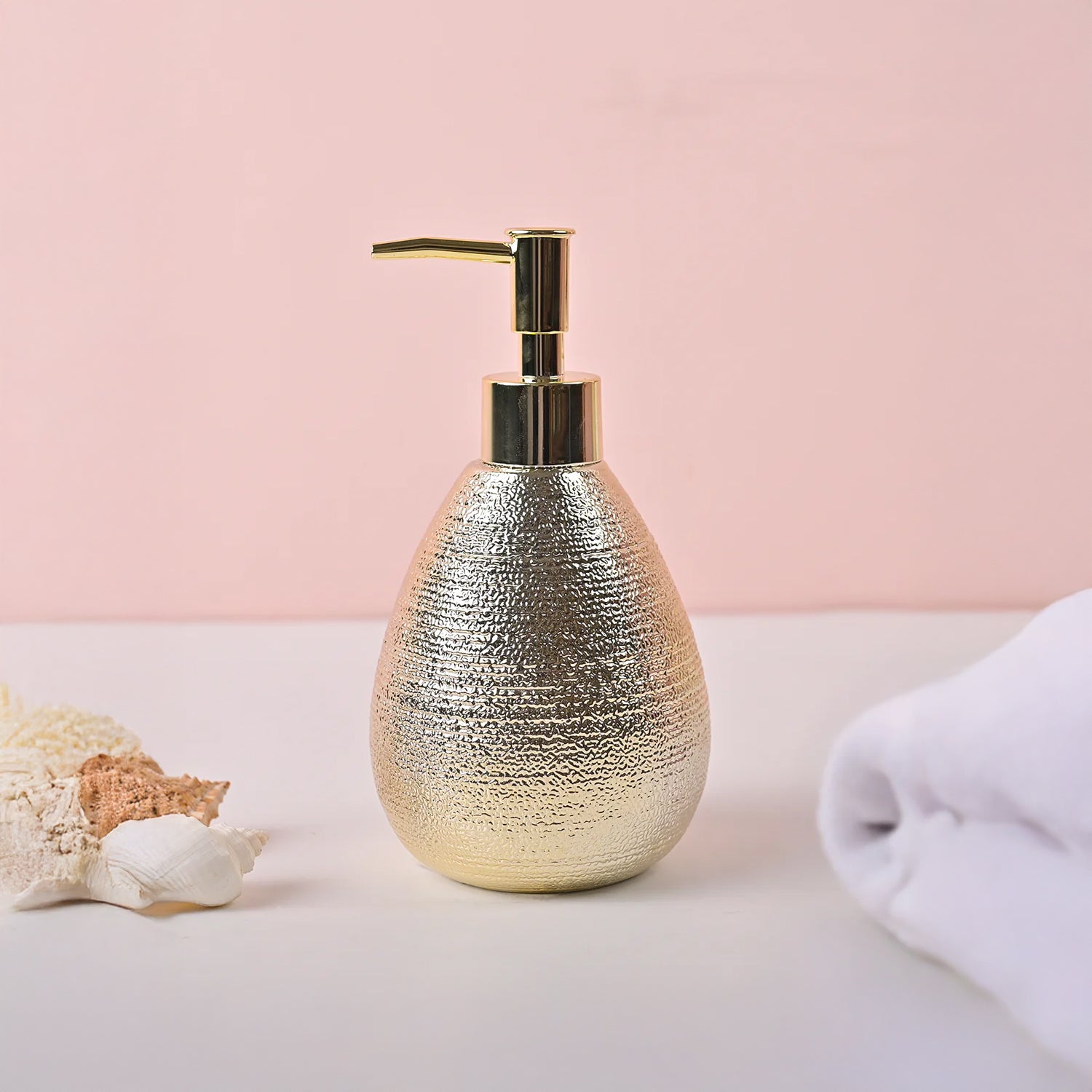Add a touch of luxury to your space with this gold stone soap dispenser. Designed in a sleek cylindrical shape with a glossy gold finish, it exudes sophistication while providing functionality. Perfect for modern bathrooms and kitchens, this premium-quality dispenser is both durable and stylish.