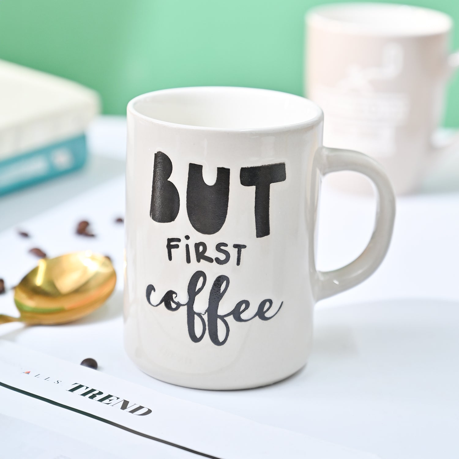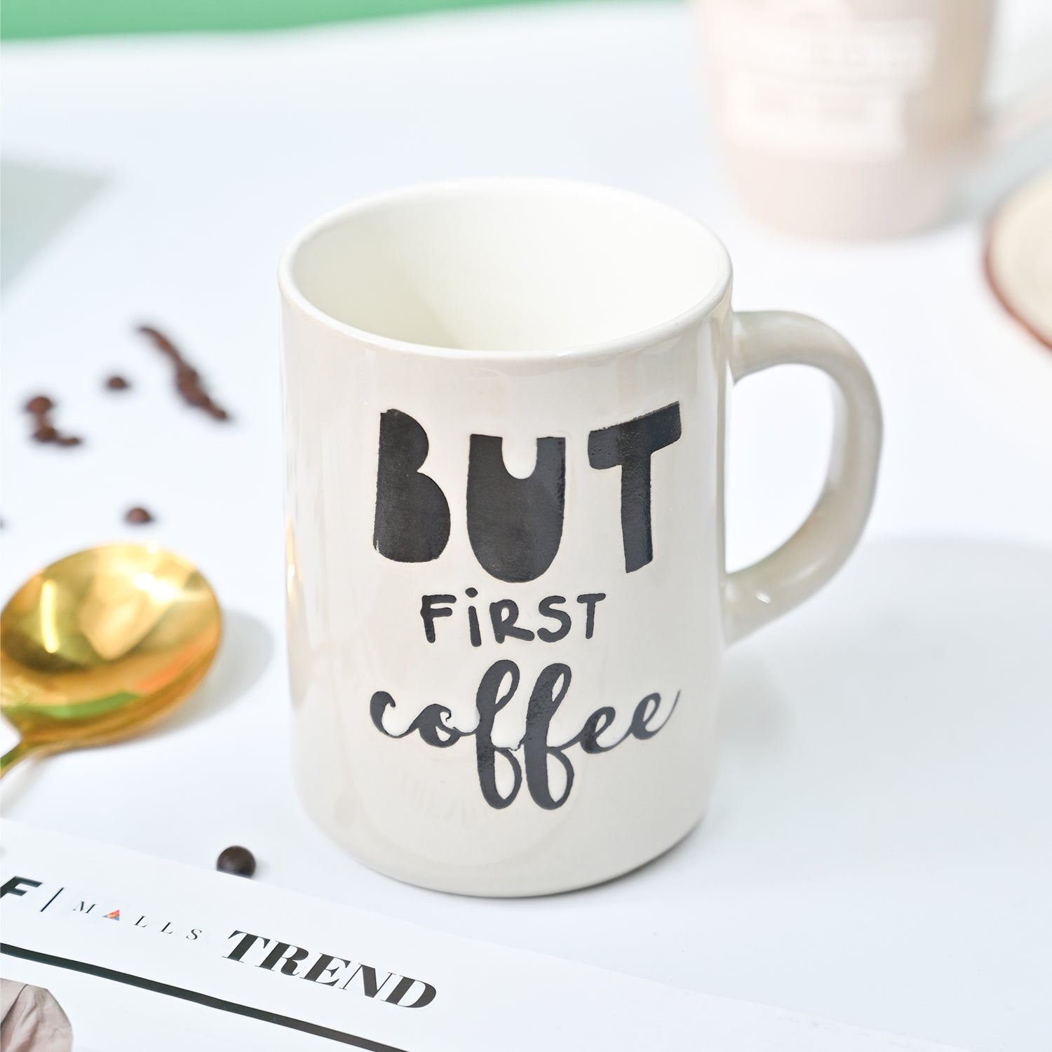 VON CASA Off White Mug (But First Coffee) - 420Ml