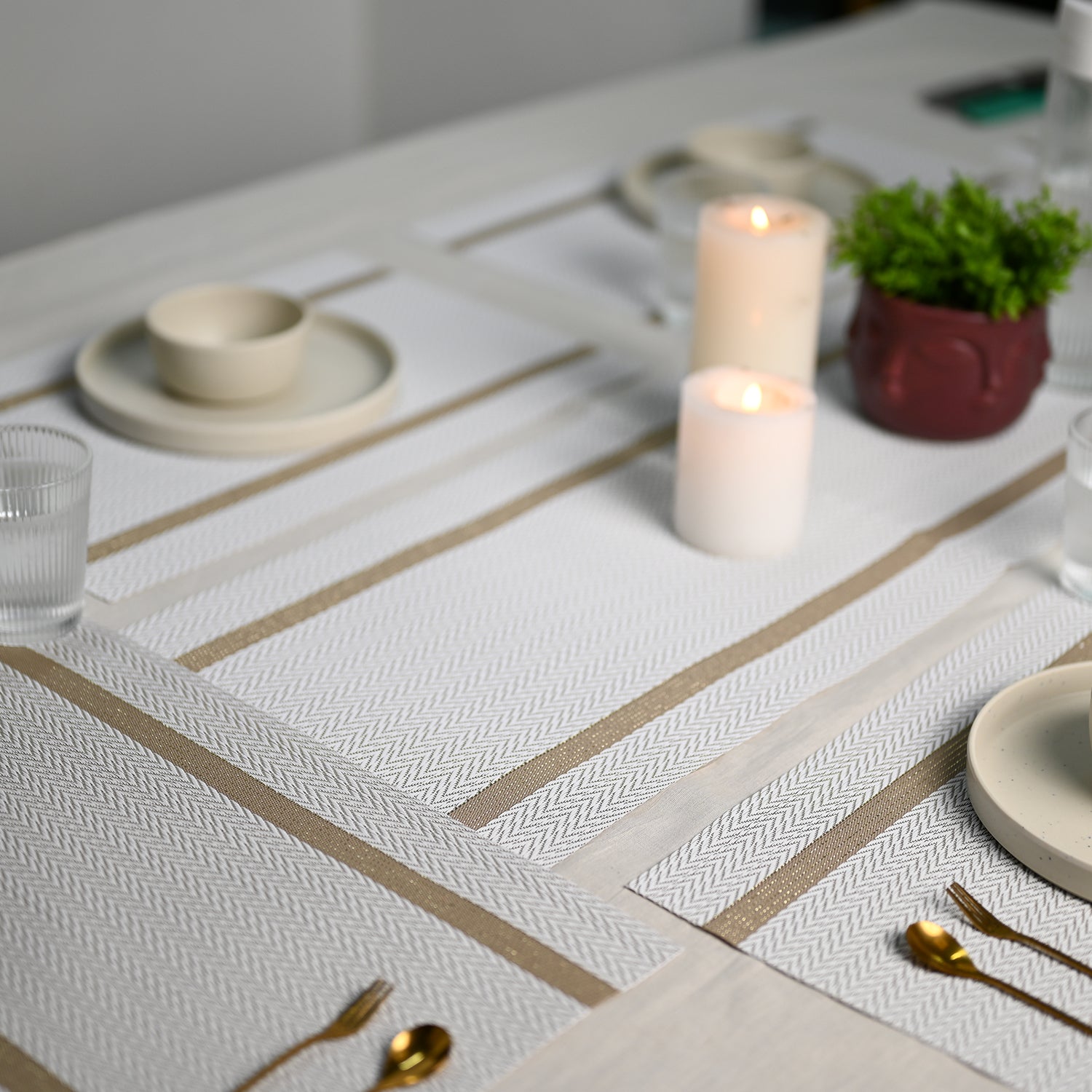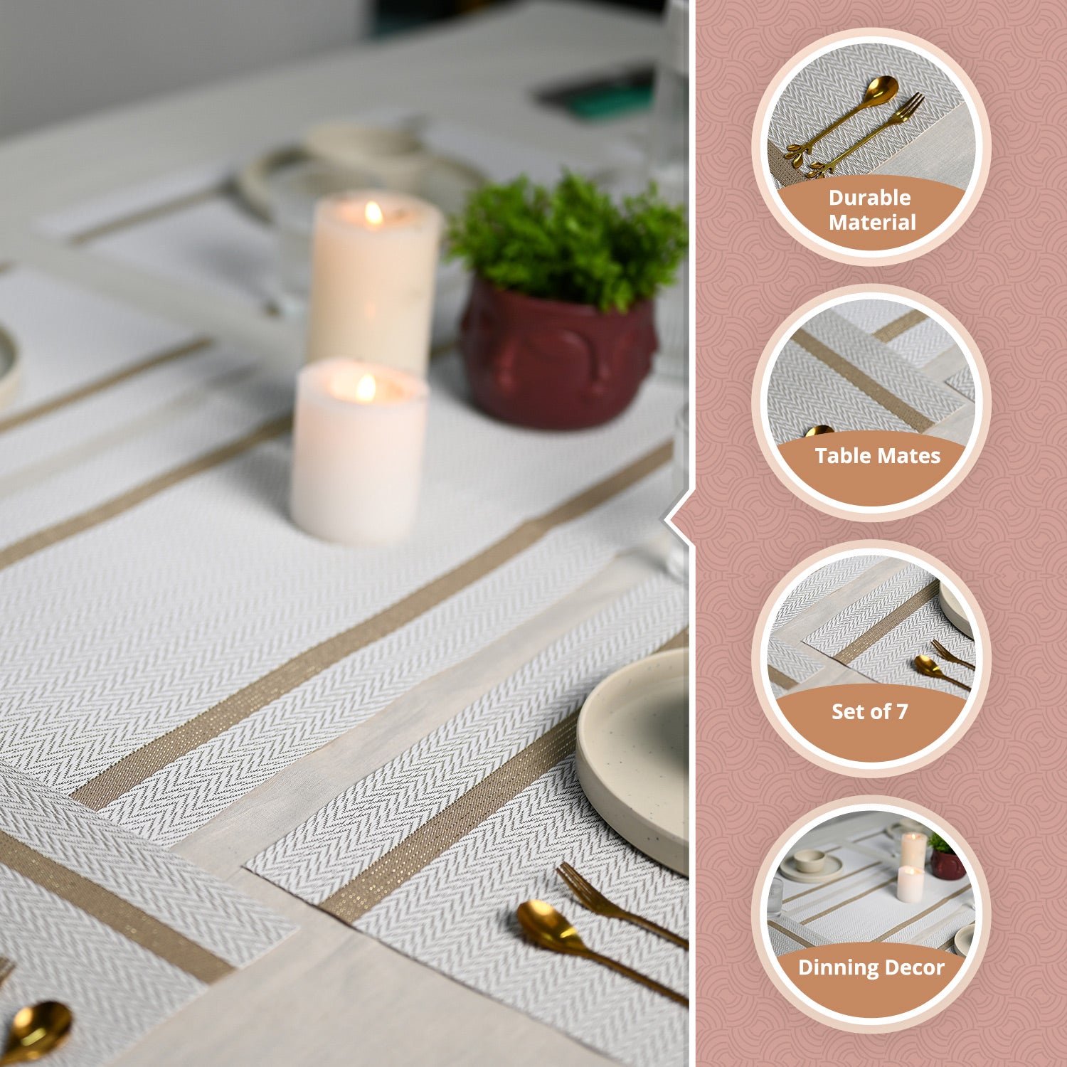This stylish set includes 6 placemats and 1 table runner made from 80% PVC and 20% polyester. The crisp white color and rectangular shape provide a clean, minimalist look for any dining table.