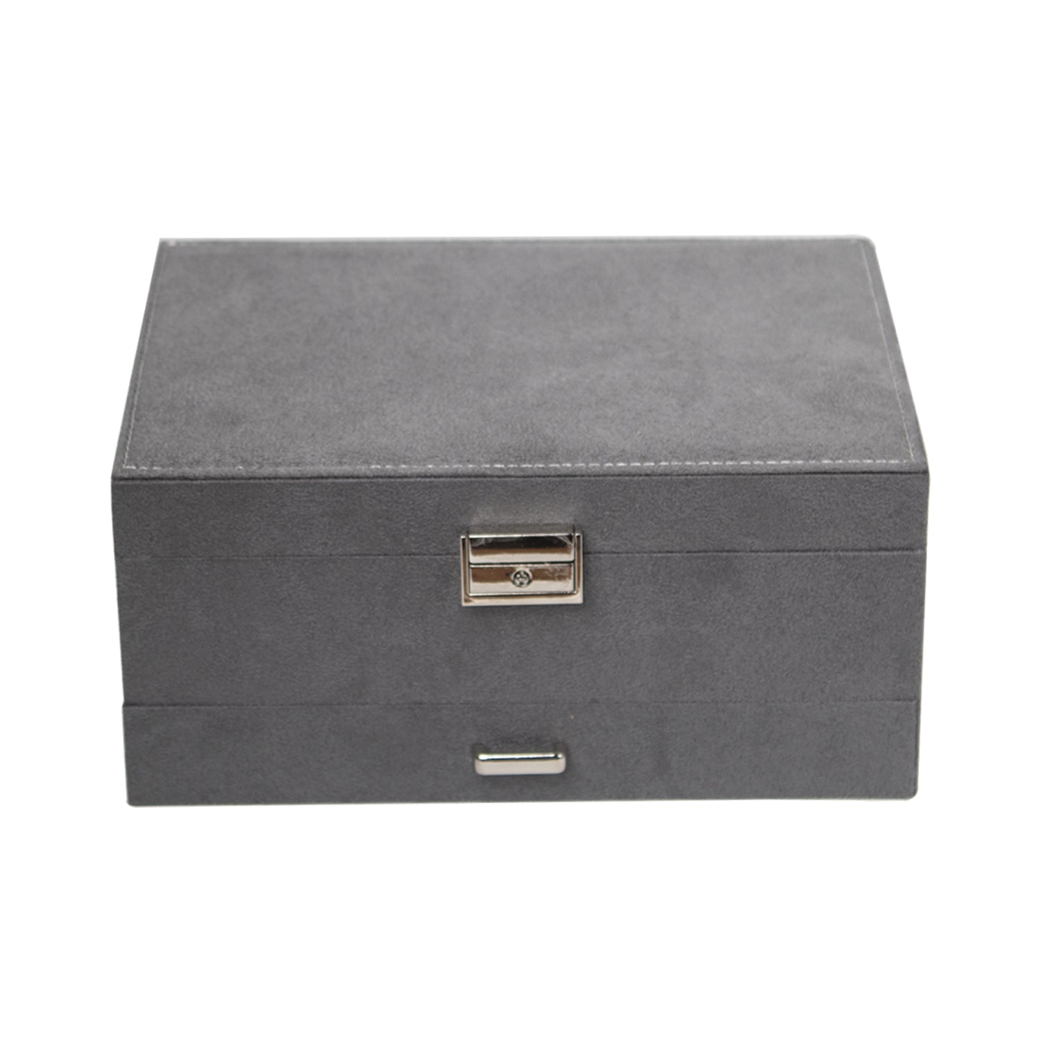 Dive into the ocean of opulence with our jewelry box in mesmerizing grey. Its velvet finish exudes luxury, cradling your precious adornments with care. The elegant rectangle shape boasts both style and functionality, making it a treasure trove of beauty and organization. Elevate your jewelry storage with this captivating masterpiece.