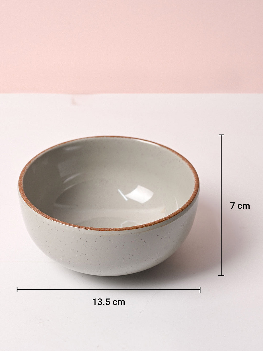 A melamine dinner set that brings a rustic charm. Includes 6 full plates, 6 quarter plates, 6 soup bowls, and 2 serving bowls. The glossy finish enhances the plain, round design. Full Plate: 26 cm, Quarter Plate: 18 cm, Soup Bowl: 10 cm, Serving Bowl: 13.5 cm.