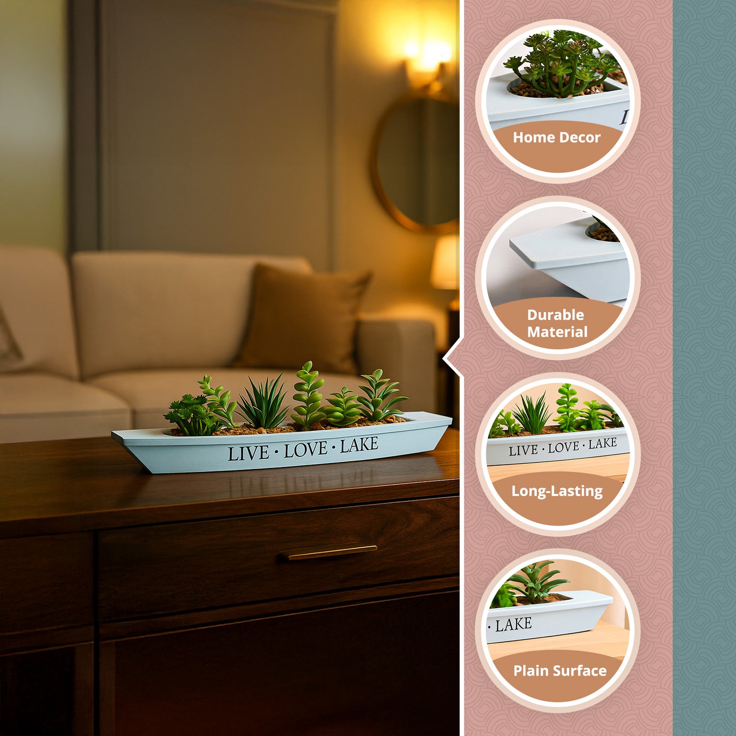 - Unique Boat Shape: Features a sleek and stylish boat shape with a matte finish, adding sophistication to any space.