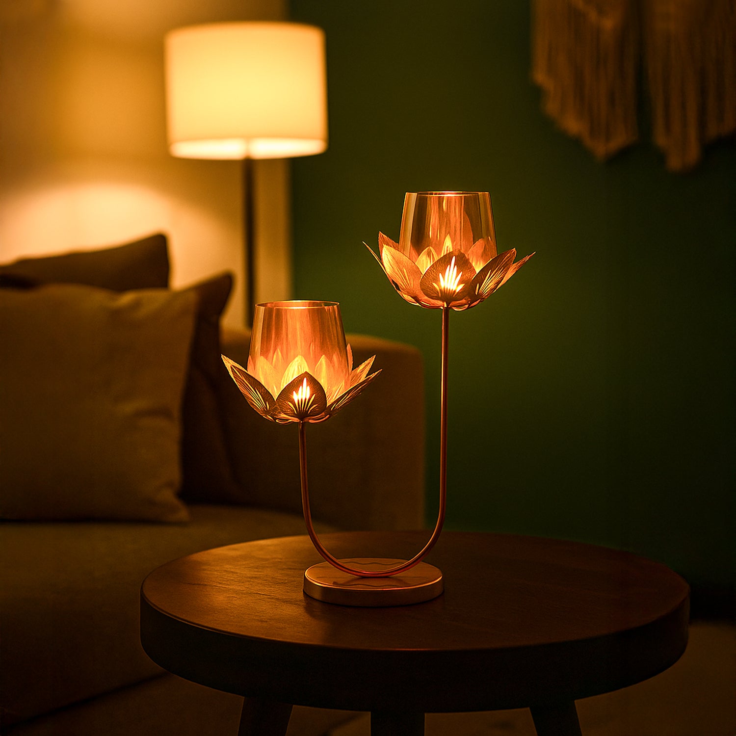 2 Votive T-Light Holder – Golden Lotus Glow