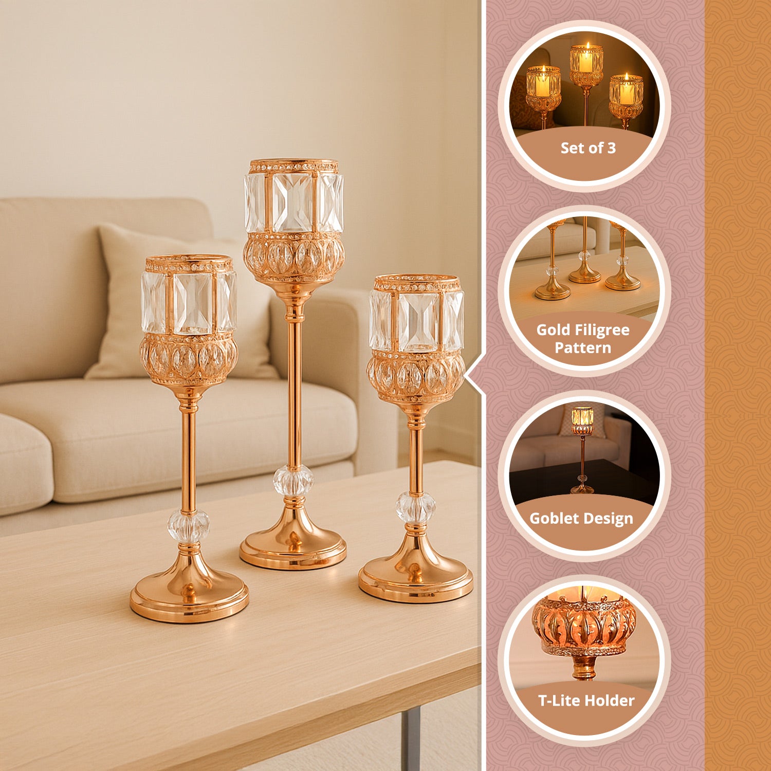 VON CASA Golden Filigree T-Light Holder - Set of 3