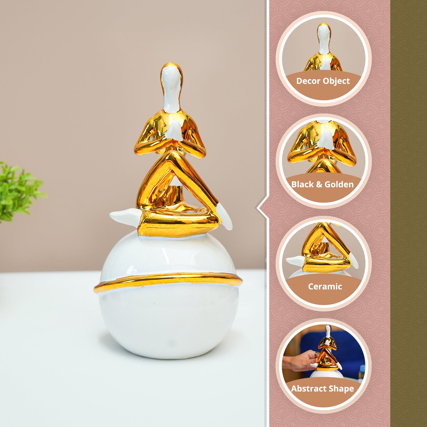 MARKET99 Ceramic Decor Object Abstract Posture Figurine in White & Golden