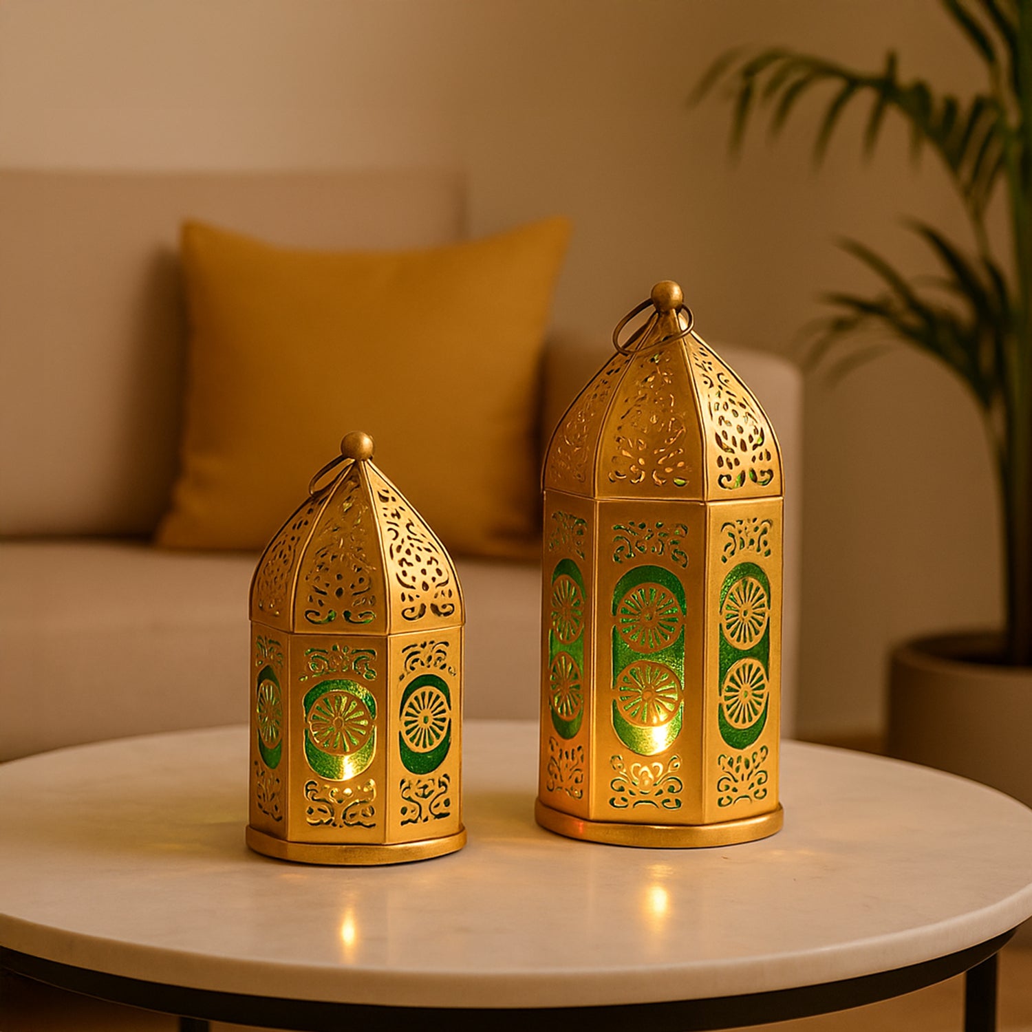 Moroccan Lantern Set of 2 – Golden & Green (Domed Design)
