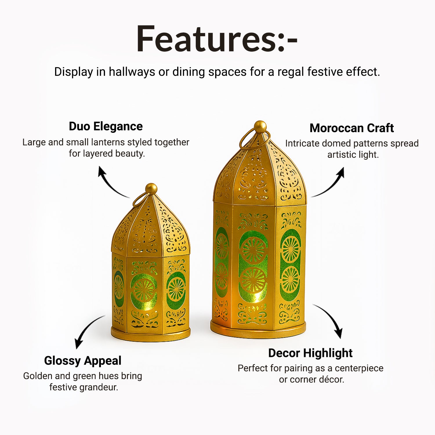 - Inspired by Moroccan artistry, these lanterns feature an elegant domed design for timeless appeal.