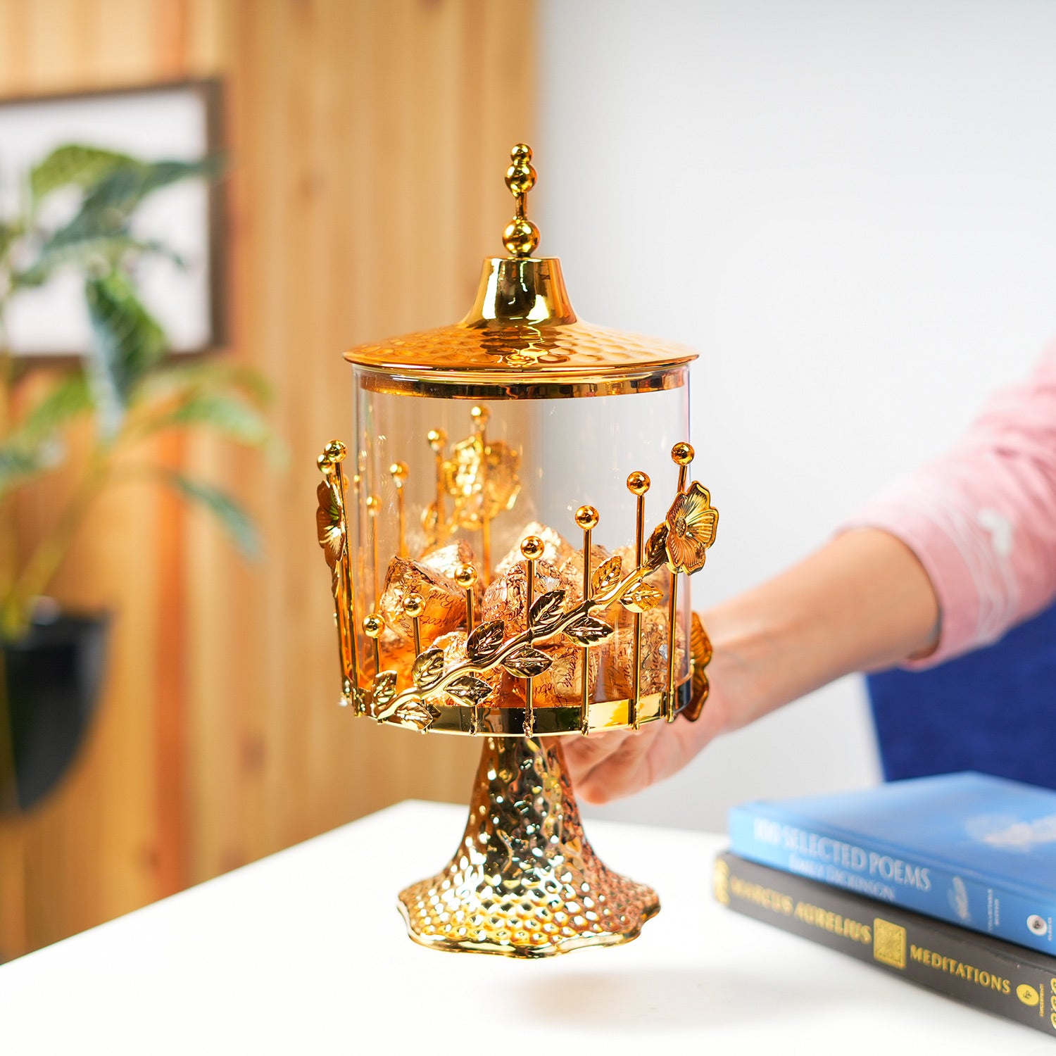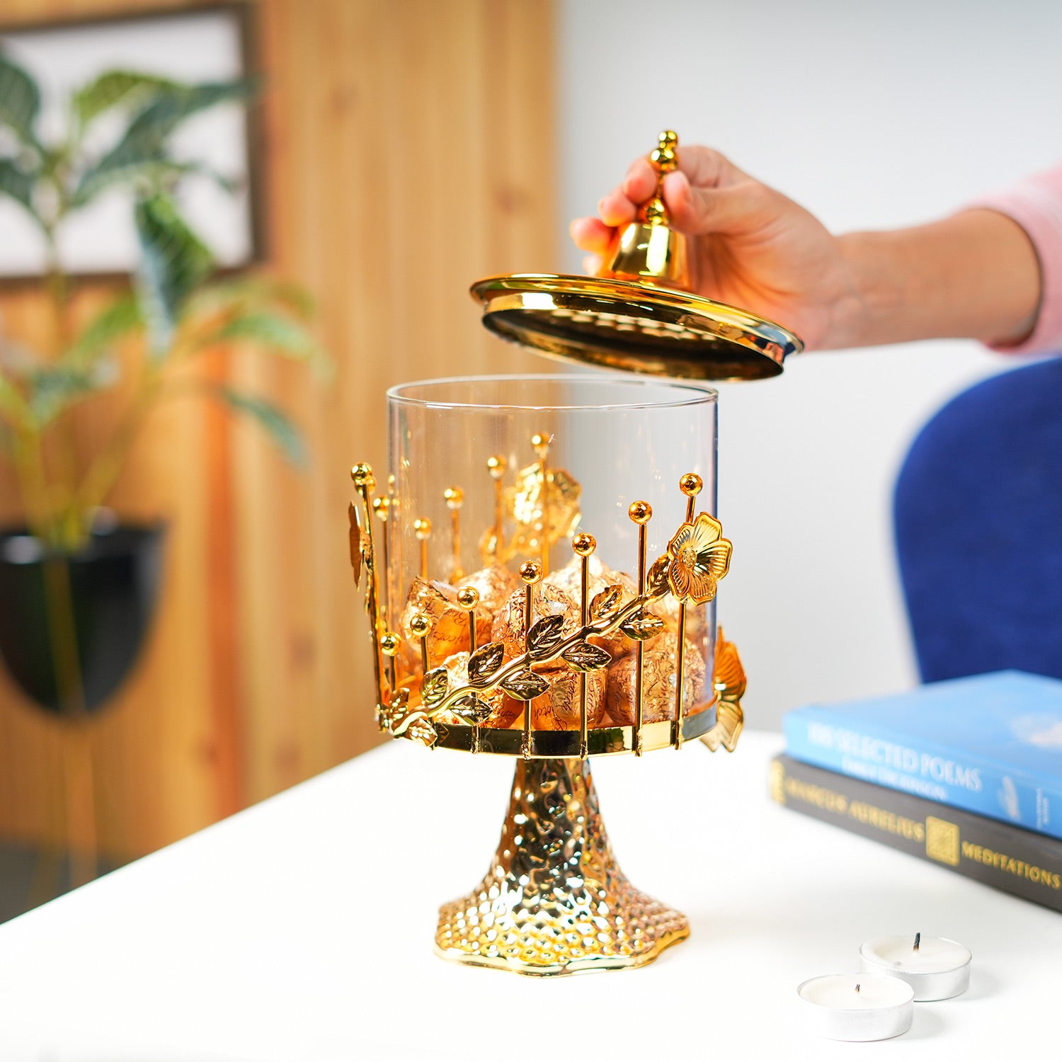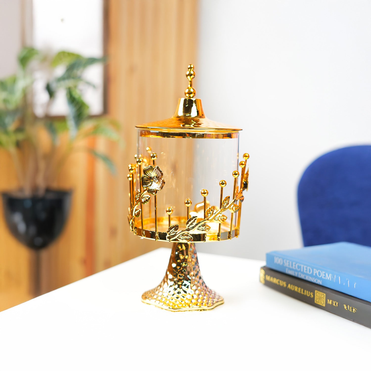 Elevate your table décor with this exquisite Cylindrical Golden Candy Bowl. Crafted from premium-grade iron, it features a stunning scallop design that adds a touch of sophistication and artistry to your home. The glossy golden finish beautifully reflects light, creating a luxurious aura perfect for festive setups, gatherings, or daily décor. Its cylindrical shape offers generous depth, ideal for storing candies, dry fruits, potpourri, or small decorative items. Designed for both function and beauty, it complements modern, classic, and festive interiors seamlessly. Lightweight yet durable, this decorative bowl blends timeless craftsmanship with contemporary elegance, making it a perfect addition to dining tables, consoles, or coffee corners.