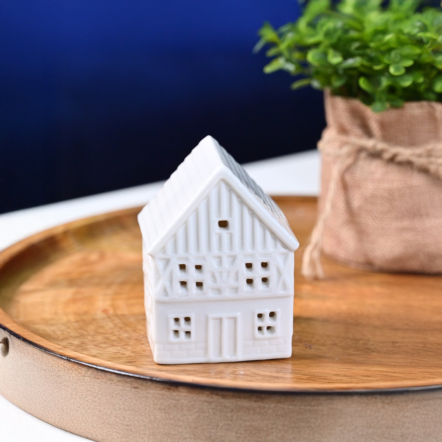 Elevate your space with this delightful home-shaped décor object. Crafted from white ceramic with a glossy finish, its simple yet charming house design brings a touch of warmth and coziness to any room, perfect for creating a welcoming atmosphere.