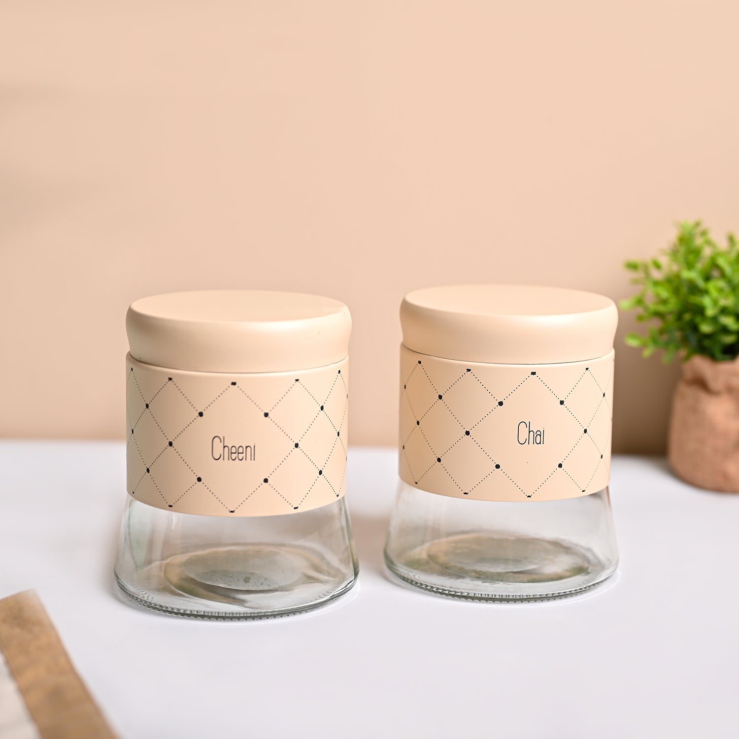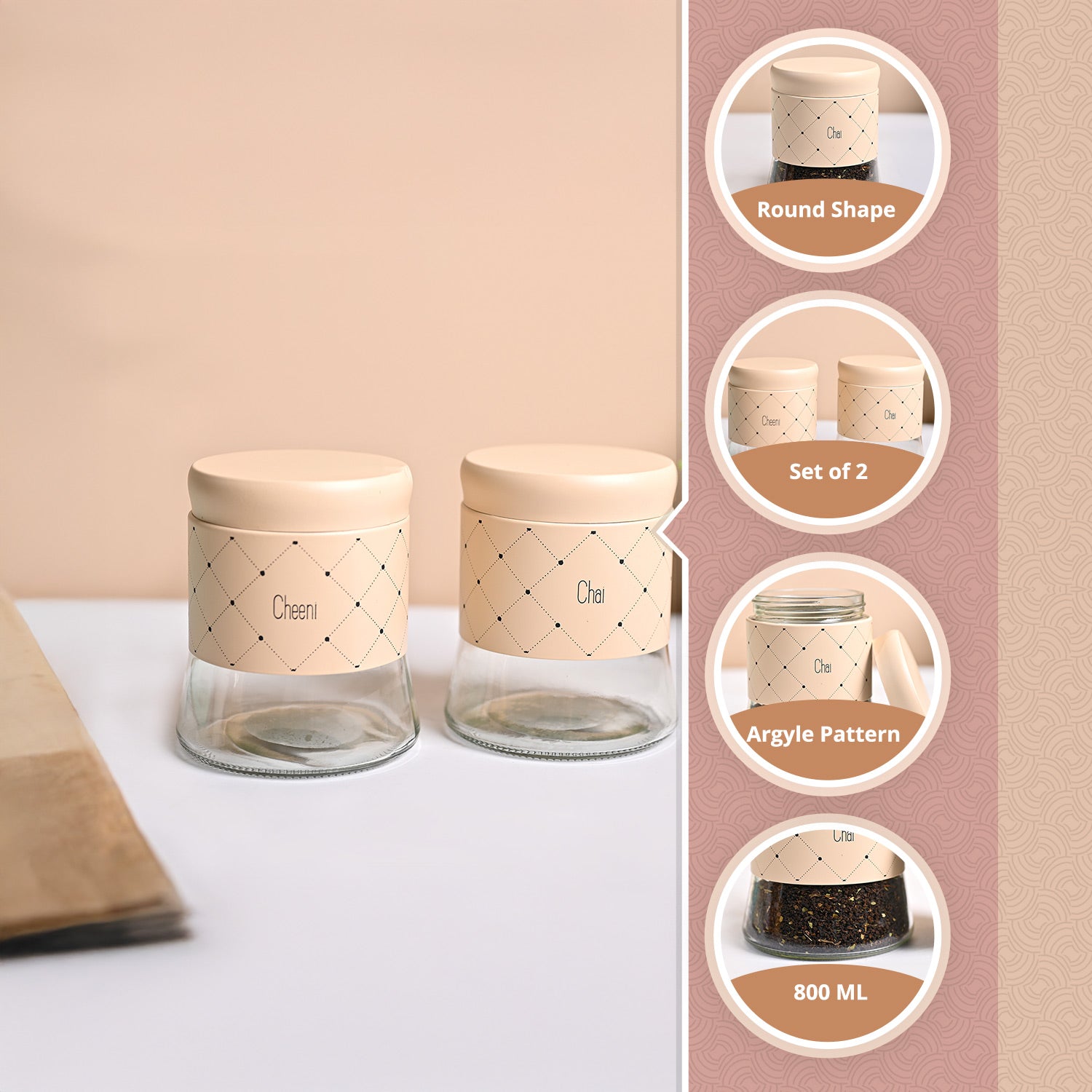 Add a touch of elegance to your kitchen counter with this set of two 800 ML glass jars from VON CASA. Designed for storing chai and cheeni, these round jars feature a chic argyle pattern in a soft white color with a modern matte finish. The sophisticated design and compact size make them a perfect blend of style and functionality for any kitchen decor, helping you keep your essentials organized and fresh.
