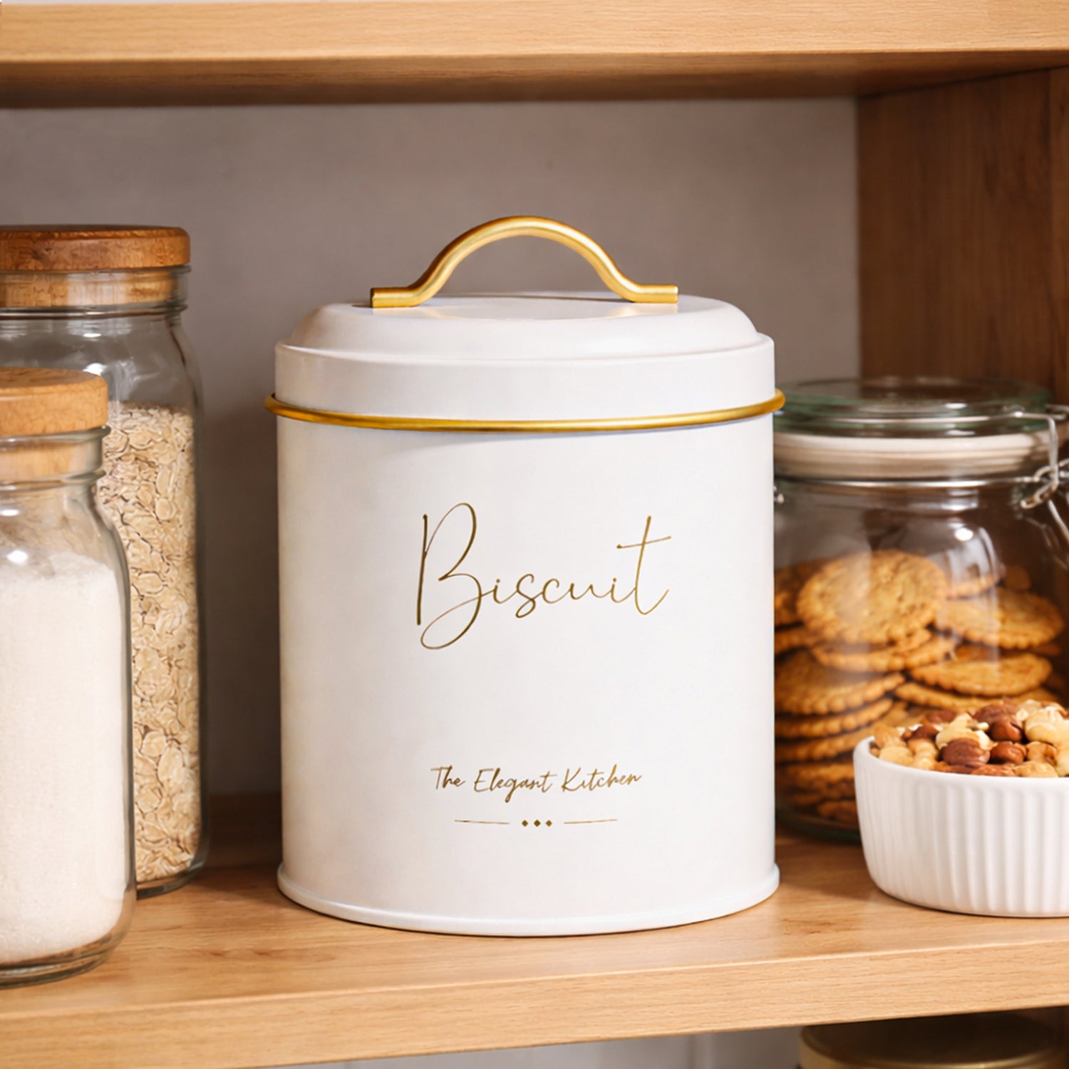 Keep your kitchen organized in style with the Von Casa White Iron Storage Jar. Made from durable imported iron, this round jar features a chic typographic design with a matte finish, combining elegance with practicality. Perfect for storing dry ingredients, snacks, or kitchen essentials, it adds a modern touch to your countertop while being easy to use and maintain.
